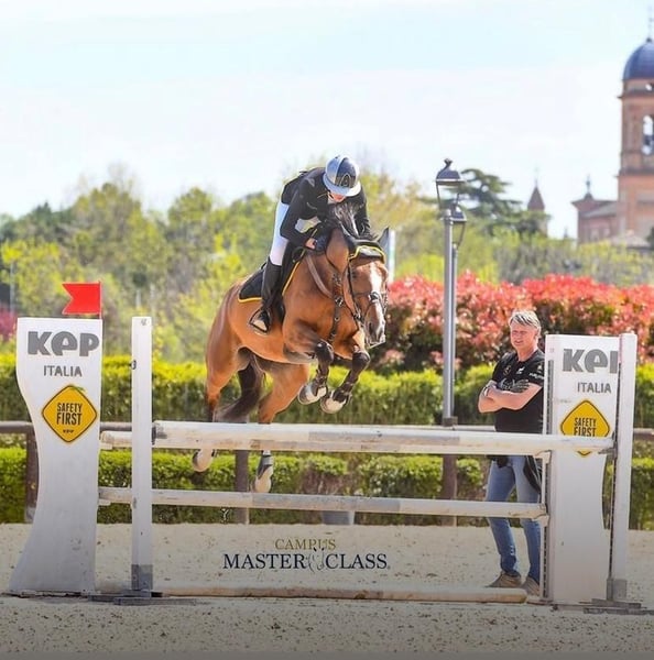 For sale: Italian mare born in 2010. She comes from excellent bloodlines, sired by Robine and out of Giussi. A truly kind-hearted and sensible mare with a great temperament. She has competed in classes at heights of 130/135 cm. Currently, she is competing in 115 cm classes. An excellent choice for obtaining a brevet or first level. We are happy to provide further information upon request.