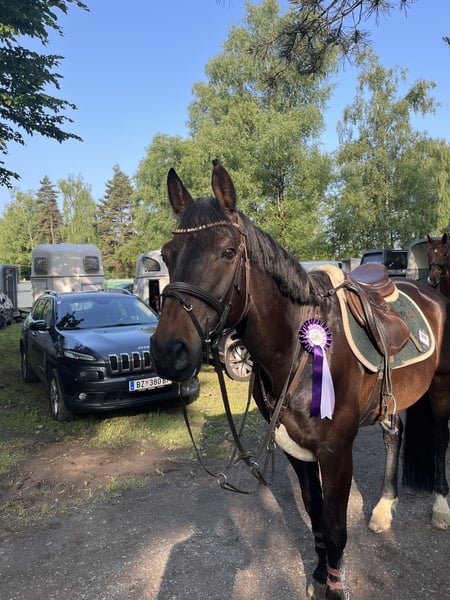 Unfortunately, I have to part ways with my horse due to stepping back from the sport. He is highly motivated every day, always eager to work, and collaborates reliably. He has no bad habits, is very social, affectionate, and people-oriented. A true heart horse, now looking for the right person. I’d be happy to send a few videos. 😊