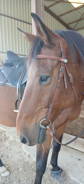 Je propose à la vente, à contre cœur, un hongre Selle Français de 13 ans. C’est un cheval gentil, volontaire et qui a envie de travailler, idéal pour quelqu’un recherchant un compagnon agréable. Il sort aussi bien seul qu’accompagné en balade. Il est désensibilisé à divers éléments (fauteuil roulant, ballon, etc.), ce qui en fait un cheval serein. Il possède également quelques bases en éthologie : déplacement des hanches et des épaules, reculer, ainsi que le départ seul sur le cercle. Habitué à vivre au pré, il apprécie une vie simple et respectueuse de ses besoins. Il mérite une famille qui lui offrira une belle vie, dans le même esprit. Séparation difficile, je recherche avant tout une bonne maison pour lui.