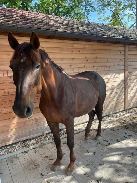 Con pesar, hemos decidido vender a nuestro caballo, Merlin. Merlin es un semental Selle Français de 16 años, con una altura de 1,70 m. Ha sido desparasitato y vacunado regularmente, es respetuoso con las herraduras y la carga, y también ha tenido sus dientes revisados periódicamente. Merlin no lleva herraduras. Debido a su artrosis, solo puede soportar cargas moderadas y se vende exclusivamente como caballo de ocio. Por su comportamiento dominante, no es apto para principiantes. En manejo y en la monta, es tranquilo, aunque a veces le gusta probar límites. Merlin puede recorrer senderos tanto solo como en grupo. Conoce el trabajo en línea, doble línea y trabajo en el suelo. Está entrenado hasta nivel L. Deseamos que encuentre unas manos amorosas donde reciba la atención que merece y pueda permanecer hasta el final de sus días. Sería el compañero ideal para jinetes de ocio que disfrutan simplemente de dar paseos en el campo. Dado que hemos experimentado que las pruebas de monta a veces se aprovechan indebidamente, solicitamos una tarifa de 30 € por la prueba de monta. Por favor, solo contactar si hay un interés serio.