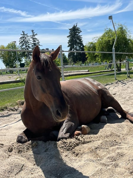 Z ciężkim sercem zdecydowaliśmy się na sprzedaż naszego wałacha Merlina. Merlin to 16-letni koń rasy Selle Français o wzroście 1,70 m. Jest regularnie odrobaczany i szczepiony, nie boi się podkuwania ani załadunku, a jego zęby są również regularnie kontrolowane. Merlin nie jest podkuwany. Ze względu na artrozę jest ograniczenie w obciążeniu i sprzedawany jest wyłącznie jako koń rekreacyjny. Ze względu na swoje dominujące zachowanie nie jest odpowiedni dla początkujących jeźdźców. W kontaktach i podczas jazdy jest posłuszny, choć czasami lubi sprawdzić granice. Merlin chodzi zarówno sam, jak i w grupie, na teren. Zna lonżę, podwójną lonżę oraz pracę na ziemi. Jest wytrenowany do poziomu L. Życzylibyśmy mu trafić w najlepsze ręce, gdzie otrzyma należną mu uwagę i będzie mógł zostać do końca swoich dni. Będzie idealnym partnerem dla jeźdźców rekreacyjnych, którzy chcą po prostu wybrać się na przejażdżkę w teren. Ze względu na doświadczenie, że jazdy próbne są często wykorzystywane, pobieramy opłatę w wysokości 30 € za jazdę próbną. Prosimy o kontakt wyłącznie w przypadku poważnego zainteresowania.