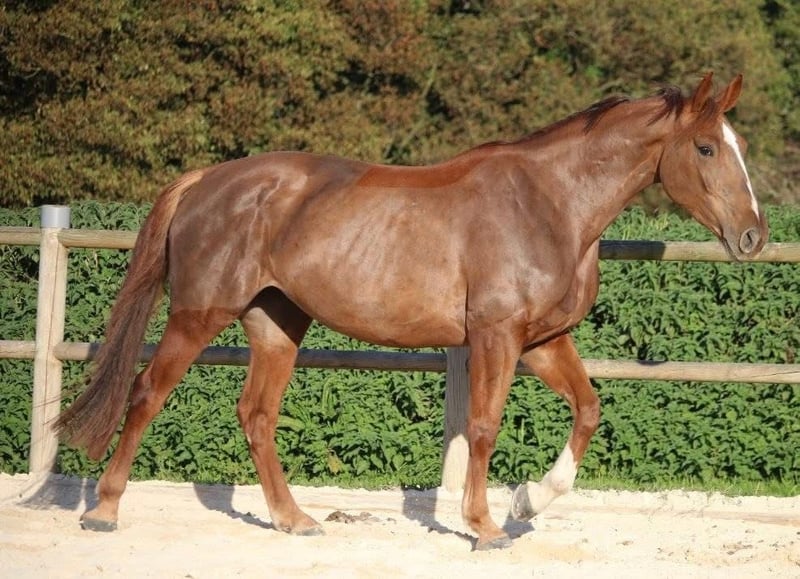 Jument de 5 ans - 1m67 - Par Farzack de l'Abbaye Jument de 5 ans, fraîchement débourrée, montrant déjà un excellent comportement.Première sortie à l'extérieur réalisée récemment : exemplaire du début à la fin, très sereine, n'a rien regardé. Toise 1m67, jument porteuse avec du cadre et une belle locomotion.Issue de Farzack de l'Abbaye, étalon performant actuellement sur les épreuves 1m55 en Italie. Jument avec la qualité et du potentiel, idéal pour un(e) cavalier(e) souhaitant l'ancien et évoluer vers les épreuves Amateur Élite. ➡️ Convient à partir d'un niveau Galop 6/7 encadré. ✔️ Visite OK.
