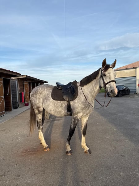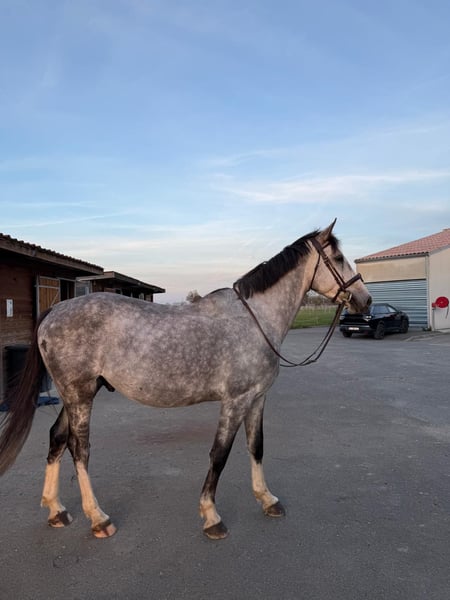 Jalisco des Hounts - SF - 6 years old Sired by Chacco Rouge Jalisco is a lovely Selle Français approximately 16.1 hh at the withers. Flexible, with beautiful gaits, very light in movement. He is sensitive but just the right amount. A responsive and honest horse. He does not spook at shows. He has had limited outings since turning 5 and early this year at 6, mainly due to lack of time. Since June 2025, he has been undergoing a very serious re-education. A sociable horse, unshod, and living in a pasture with a mare. !! A horse with significant potential !! - attractive price He still requires considerable work on the flat to refine his responsiveness and concentration; he is a true young horse. His rider will have the opportunity to accompany him in developing his very great potential. Visible in Muret