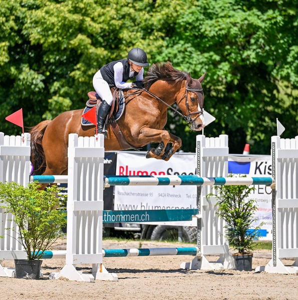 Sportstute, Selle Français, 2016, - erfolgreich bis 1.30m. Von Viking d'La Rousserie x Kalem 1976 ox Wunderschöne, elegante und feine Fuchsstute (1.58m) mit enormer Qualität, viel Blut und super Einstellung. Springt immer, aus jeder Distanz. Intelligent, denkt mit, viel Parcourserfahrung. Ein echtes Verlass-und Sportpferd - Charakter, Herz und Einstellung immer zu 100% auf der Seite ihres ambitionierten Reiters. Highlights Sehr viel Go und Vermögen, aber immer händlebar extrem vorsichtig und intelligent im Parcours absolut kein Stopper ehrlich, kämpf für ihren Reiter sehr menschenbezogen kerngesund, war beim Zahnarzt und Physio absolut brav im Umgang, Schmied, Verladen etc geht alleine oder in der Gruppe ins Gelände Trotz ihrer Grösse denkt sie breit ab und trägt auch ohne Probleme einen 'normalgrossen' Erwachsenen, egal on Mann oder Frau. Bedenkenlose Ankaufsuntersuchung von 07/25 vorhanden Standort: Wermatswil, Kanton Zürich Probereiten nach Absprache möglich Viele Videos bei Rimondo unter Gribouille Dela Cense