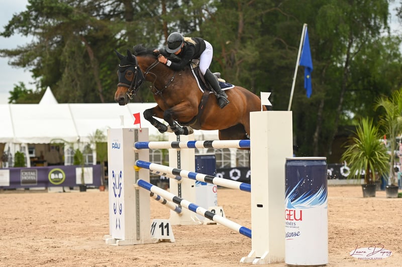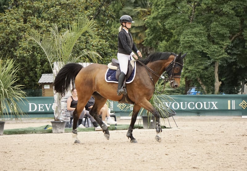 Fidelia est une jument de 11 ans par Dollar de la pierre ayant couru jusqu’à 140cm avec une cavalière de 18 ans. Elle classe 130/135cm. Elle a beaucoup de sang, de la force et des moyens, très gentille à pied, en extérieur…