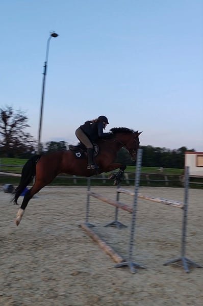 In vendita: Si prega di leggere attentamente l’annuncio (prezzo, zona). Per persone non serie, si prega di astenersi. J’t'adore di Blois, fattrice Selle Français di 6 anni, alta 1,65 m. Potenziale minimo di 130. Prezzo interessante per una vendita rapida. Inizia la carriera da competizione: ha partecipato fino a livello Amateur 2 GP 1,10 m finora. Imperturbabile e gentile. Per sport e/o riproduzione. Sangue, forza ed eleganza. Mentalità eccezionale. Montata con morso semplice. * In salto: inarrestabile e rispettosa. Non si distrae (decorazioni, basi, vasi di fiori, muri, guadi... ✅). Attualmente salta 110/115 cm in sequenza. * In dressage: buone basi. Cavalcata rotonda ai tre tempi, controgaloppo, spostamenti laterali al passo e al trotto, cambi di piede (in corso di lavoro), variazioni di andatura (allungamenti/riduzioni), estensione del collo... * Ha già fatto cross. * Sicurezza in passeggiata: versatile, si muove bene da sola o accompagnata, molto attenta al cavaliere, sia a cavallo che a piedi. * Trec: lavora molto bene al longe (collare, collare etologico, briglia), con longes, a mano. * A piedi: estremamente gentile e facile da gestire quotidianamente. Abituata a tutti i tipi di cure. OTTIME ORIGINI: Suo padre Nervoso (ISO 170 + 1,60 m CSO) da Le Tôt de Semilly (ISO 177 + 1,60 m CSO) e Estrella del Dia (1,50 m CSO), figlia di Quilane (1,60 m CSO) e Galoubet A (ISO 181 + 1,60 m CSO). Sua madre Victoire de Blois (ha partecipato fino a 1,10 m prima di dedicarsi alla riproduzione) da Paddock du Plessis (ISO 178 + 1,60 m CSO), figlio di Kannan, miglior stallone mondiale (ISO 178 + 1,60 m CSO). Suo fratello di 7 anni, Intuition de Blois (da Nervoso e Victoire de Blois), ha saltato finora fino a 1,30 m. ✅ Aggiornata su tutto: vaccinazioni, sverminazioni, ferrature/paraggi, dentista (denti di lupo estratti), osteopata. ✅ Ferrata davanti (completamente possibile passare al barefoot). ✅ Abituata alla vita in box/paddock e ha già vissuto in branco. È fondamentale che continui a vivere principalmente all’aperto + fieno a volontà. ✅ Si carica bene e può viaggiare da sola. 💥 Ideale per un appassionato che desidera divertirsi in gara e creare un vero legame. ‼️ Riservato a famiglie di alto livello. Non per scopi commerciali. Per ulteriori informazioni, contattare via email, SMS o messaggio su Equirodi. Visibile e testabile nelle Valli Vosgane fin da subito. Video su richiesta.