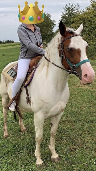 Elle est très peureuse, elle est debourrée mais pas désensibilisée, donc très compliqué, son travail est à reprendre de À à Z…