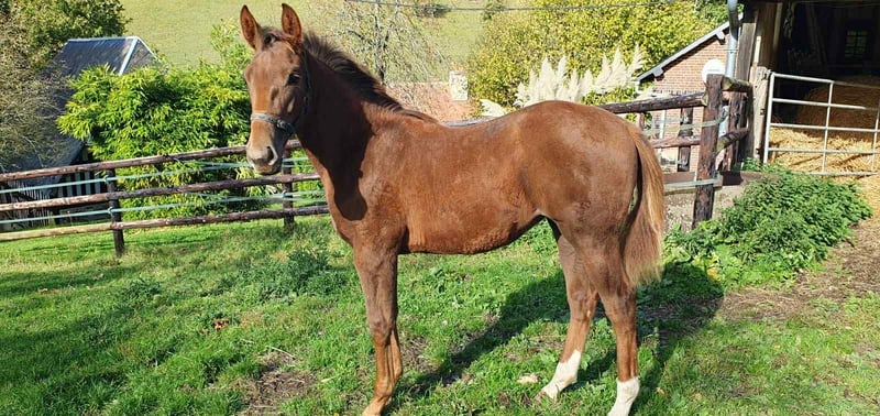 Cette magnifique pouliche Selle Français séduit par sa prestance, son expression et son modèle moderne. Issue d’un croisement haut de gamme, elle allie la puissance du dressage allemand à la finesse et la polyvalence des meilleures lignées françaises.Fille du célèbre Vitalis, référence mondiale en dressage et père de nombreux performers internationaux, elle hérite d’allures amples, élastiques et d’une locomotion naturellement ascendante.Sa mère Temesis (par Ciel d’Espoir alias Quattro B) a elle-même brillé en dressage pur jusqu’au niveau Saint-Georges (IDR 127), après une carrière remarquée dès le plus jeune âge : Victoire au Régional du Haras du Pin à 3 ans – modèle, allures et obstacle en liberté et montée. La souche maternelle est particulièrement solide : Une tante de Praga est IDR 136, Un oncle, étalon privé, affiche un ISO 131, témoignant d’une véritable souche mixte performante, avec des chevaux distingués aussi bien en dressage, CSO qu’en Modèles & Allures.Praga est une pouliche bien manipulée, équilibrée et proche de l’homme, au caractère exemplaire. Elle grandit dans d’excellentes conditions, régulièrement suivie (maréchal, vaccins, vermifuges à jour). Son modèle moderne et son cadre harmonieux laissent présager une taille adulte entre 1,65 m et 1,68 m. Elle se distingue déjà par de très belles allures, beaucoup de tonus, de rebond et de bonne volonté dans la préparation et l'exécution des concours d'élevage. Une jeune jument d’avenir, alliant chic, mental et génétique de tout premier plan, idéale pour un cavalier ou un éleveur souhaitant investir dans une lignée dressage moderne et prometteuse.