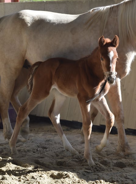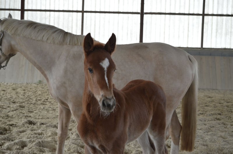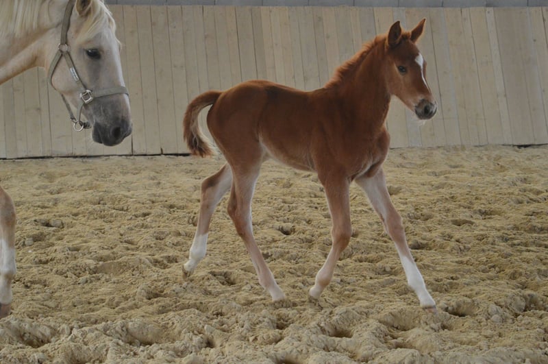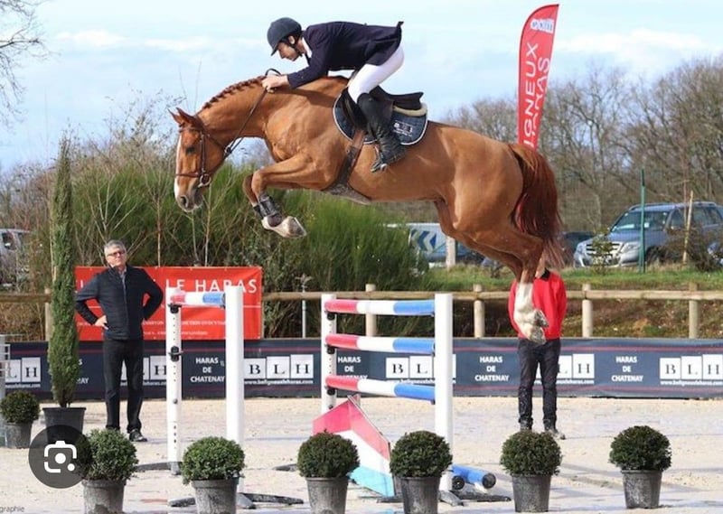 Très gentille et proche de l'homme , à déjà voyagé, très manipuler, une vrai facile Son père est le célèbre Canabis D'albain Vice champion de France des 5 ans Vainqueur de 2 épreuves au championnat du monde des 6 ans à Lanaken ISO 154 Baloubet du rouet/ kannan L'or de Miranola sa mère ( souche dressage par le père mais a sauté aussi jusqu'à 115 et souche de quidam de rivel) Solide, très bon aplomb et du sang , un peu de chic!