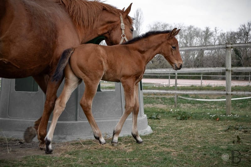 Male Selle Français Foal, bay, of standard size. Poppy has an excellent temperament—calm, straightforward, and quick to learn. He is handled regularly, stands for the farrier, and loads correctly. Up-to-date on deworming and vaccinations. This foal is very human-oriented and eager to learn. He has good bone and frame, with a very typical Selle Français conformation. Genetically, his sire is POPSTAR LOZONAIS (Quick Star x Muguet du Manoir), an SFO-rated stallion with an ISO score of 161, who had a solid competitive career and sired many champions. His dam line includes Rhodésie d'Acy (Pamphile x Le Tot de Semilly), ISO 120, a mare that competed successfully at 120-125 in show jumping. The maternal line features numerous competitors who have jumped over 130. Notably, his fourth dam is Danae, dam of Hilda du Mesnil, who is the dam of Reine du Mesnil, herself the dam of the very talented Baladine du Mesnil, with an ISO of 181. A pedigree that includes many influential Selle Français ancestors and a temperament eager to learn. I highly recommend coming to meet him in person to better appreciate his character and potential.
