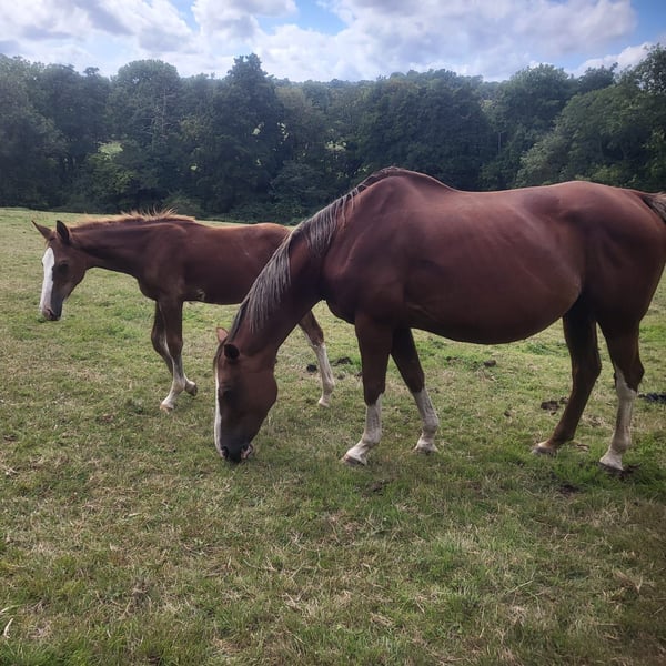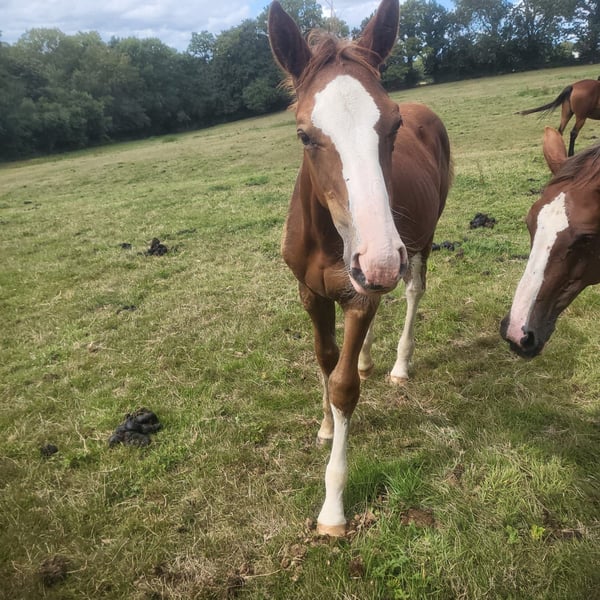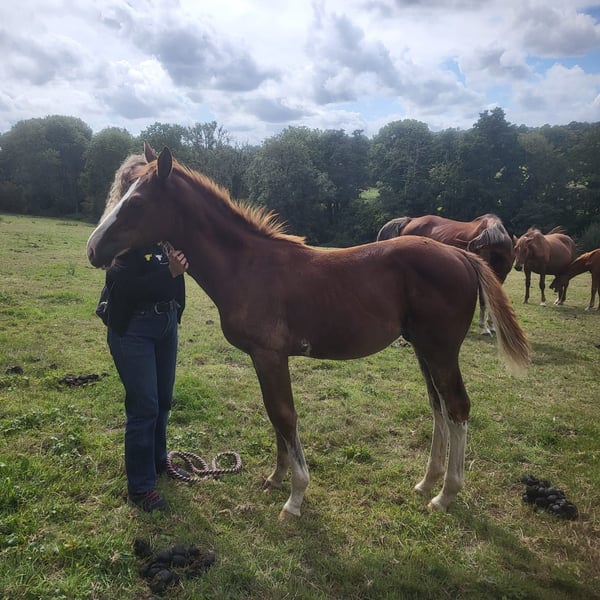 Top pedigree pour ce très beau foal : Père : Kilimandjaro Semilly (Acton Breaker x Baloubet du Rouet) Mère : Vidaline ISO 130 (Quartz du Chanu (L'Arc de Triomphe x Papillon Rouge) x Chenu du Plessis) Penjab d'Herloïne se distingue par son modèle harmonieux, de belles allures et du chic avec ses grandes chaussettes, une belle liste et une tache originale sur le ventre Il est d'un caractère curieux. Il est manipulé depuis la naissance et habitué aux soins courants. ➡️ Foal visible dans le Calvados ➡️ Partira sevré, pucé, vacciné et avec papiers 📌 Convient pour le sport (solides origines CSO) 💶 Prix : 7 000 € ( pas de TVA) 📞 Plus d’informations et photos/vidéos sur demande