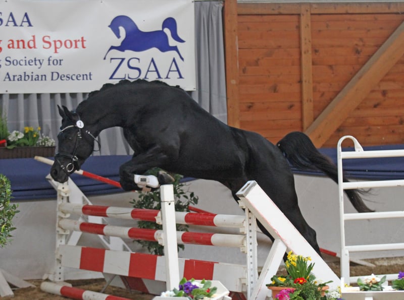 Sharaf Fareed AB Geboren: 2013 Stockmaß: 160cm Röhrbein: 20,0cm CA und SCID frei Hengstlinie: Jamil El Kebir über Gharib SHARAF FAREED AB ist ein typvollen aus einer Leistungsfamilie stammender Hengst. Er wurde 2017 vom ZSAA mit 7,4 (8/8/7/8/7/7/7) gekört. Fareed ist sehr rittig und mit sehr guten Grundgangarten ausgestattet. Er ist aus erlesenem, sporterfolgreichem Hause. Fareed´s fast Vollbruder Shah Haaleh AB ist schon über CEI** 120 km erfolgreich. Sharaf Fareed hat inzwischen mit Esme AB und Heavens Daylight AB zwei Prämienstuten (ZSAA) und auch mehrere 3* prämierte Fohlen. Seine Tochter Hafida al Nasaa AB ist inzwischen im Distanzsport bis 60 km erfolgreich. Seine Mutter ist unsere russisch-polnisch gezogene Heart of Fire. Heart of Fire ist Elitestute und doppelte Hengstmutter (Simply The Best AB gekörter und leistungsgeprüfter Prämienhengst). Heart of Fire hat ihre SLP mit Fremdreitertest von 8,5 abgelegt. Ihre Mutter YA Heartbreaker ist ebenfalls Elitestute. Unter ihren Nachkommen befinden sich bis CEI*** 160 km erfolgreiche Distanzpferde bis hin zu WM Aspiranten und viele im Feld gegen WB leistungsgeprüfte Stuten. bis 160 km erfolgreiche Ditstanzpferde: Abou Aichan, Ali Baba, Hariya ED Heart of Fires Vater Aldaran ist selbst leistungsgeprüft und war mit einem Jugendlichen Dressur erfolgreich. Seine Nachkommen sind inzwischen im Distanzsport in allen Streckenlängen bis 160 km zu finden, wie Ali Baba oder Anuar AB der für die Distant WM 2021 qualifiziert ist. Sharaf Fareeds Vater ist unser vom VZAP und österreichischem Vollblutaraber Zuchtverband gekörter und doppelt leistungsgeprüfter ägyptisch asiler FM Shah Nasaa. Seine Nachzucht ist inzwischen Dressur und Distanz erfolgreich (Lateefa AB, Shah Haaleh AB, Hanifah AB). Mehr noch über unsere Pferde bei : www.bavaria-pferdesport.de Decktaxe:1000€ nur im Natursprung Bei Interesse nehmen Sie bitte direkt Kontakt mit Angelika Bruckner Bavaria Pferdesport Tel 0171 7494947 E-Mail info@bavaria-pferdesport.de auf Natürlich können Sie gerne unsere Pferde nach Terminvereinbarung und Einhaltunge der Corona Regeln besuchen.Discendenza