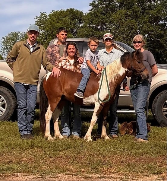 I proudly present Boots, a truly special little pony with a big personality and an even bigger heart. This 11.2hh Registered Bay Pinto Shetland gelding, located in Missouri, has been part of our family—especially for my six-year-old son, who has shared many adventures with him, as you can see in his full video. Despite his smaller size, he confidently keeps up with much larger horses, joining trail rides and even week-long camping trips. He’s steady, willing, and clearly enjoys being part of the group trail rides. Boots has participated in parades, strolled through town during Halloween trick-or-treating, and even gone swimming with us. He enjoys being out in the yard watching the kids play around him. Boots thrives in new environments and takes everything in stride, showing his adaptable, easygoing nature. Boots loves attention and has a wonderful personality. He’s eager to please and knows several fun and useful tricks, including bowing, sitting, and walking over to pick you up at a mounting block. He crosses water confidently, can drive from the ground, picking up his feet is a breeze, and he has given pony rides to other children. Handling Boots is a breeze—he’s easy to bathe, stands quietly for hoof trimming, and has never required shoes. He’s as low-maintenance as he is lovable. He spends time in the pasture with his mate, grazing on grass. He gets special treats from time to time. What truly sets Boots apart is his companionship. He’s like having a big dog around. He’s not just a pony—he’s part of the family. He’s entertaining and has been a joy for my son, making him a one-of-a-kind partner and friend. Boots is being offered for sale as my son transitions to a larger horse. He has played a big role in getting my son started in riding, and now he’s ready to take the next step with a bigger mount. * Boots will come with Registration papers, Bill of Sale, Vet inspection, Coggins, Saddle, and Tack.