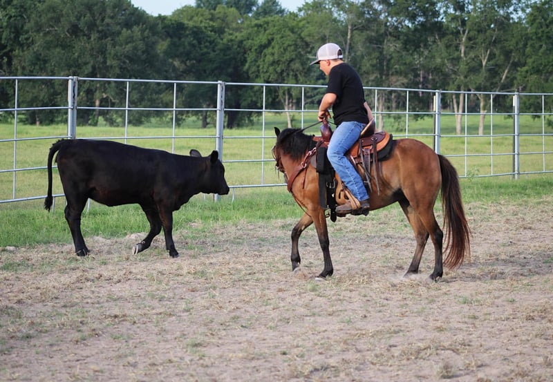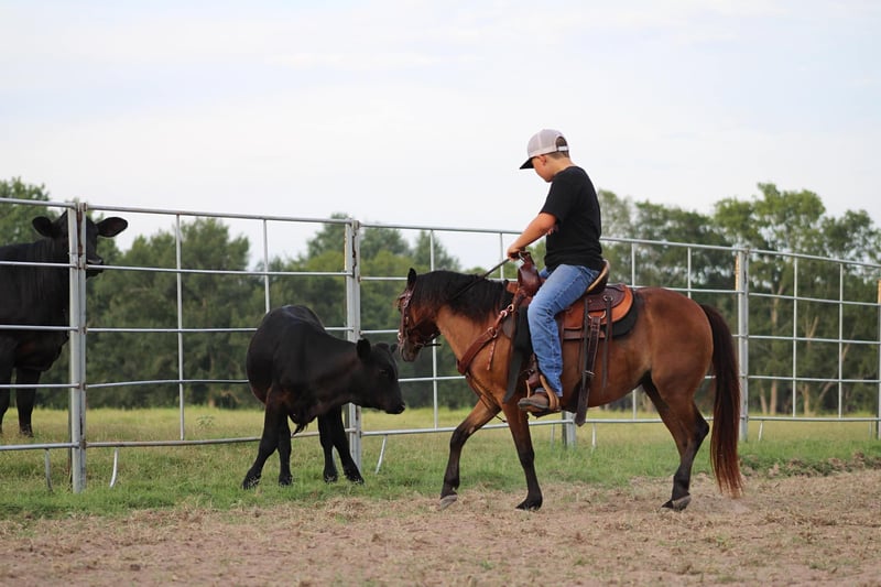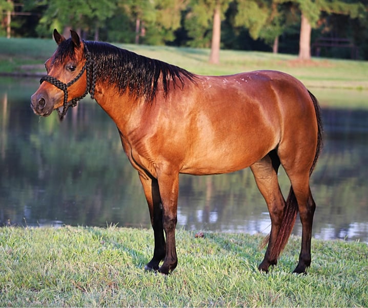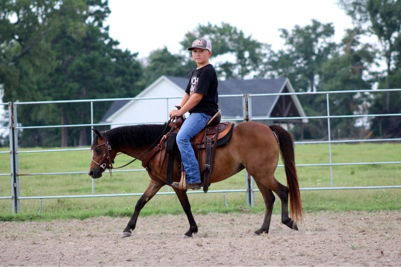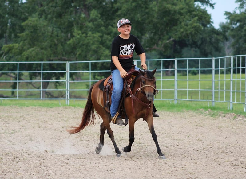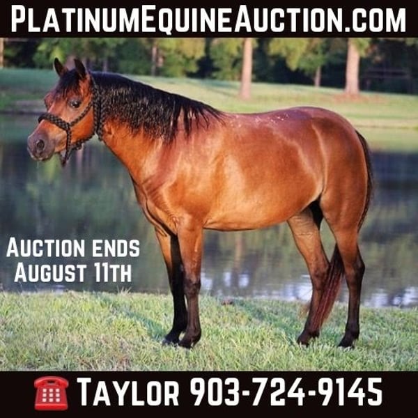 ONLINE AUCTION Place your bids at www.PlatinumEquineAuction.com Starting Bid $3500 Auction ends August 11th, 2024 Need a new saddle? Check out White Rock Saddles on our website or Facebook! Stone Pony Farm’s Copy That aka “Ruby” is a precious 10 year old bay pony mare that is registered in the American Shetland Pony Club. Little miss Ruby stands a perfect 45 and 1/2 inches tall…. so she is the perfect size for the littlest of riders all the way up to bigger/taller riders like my son who stands 5 foot and about 90lbs for size reference. Not only is Ruby the perfect height, but she is also thicker than a bowl of oatmeal! If you are looking for something extremely gentle, full of personality, cute as can be, AND registered….. stop what you’re doing because Ruby has all the boxes checked twice! Ruby is the sweetest, most in your pocket type pony you could ever dream of! The second she hears you outside, she is headed to the barn and ready to greet you! She gets along and makes friends with any other ponies that I have put her with and will even eat out of the same bucket if she really likes their company. Ruby is not scared of dogs in the least bit either. From our Great Dane all the way down to our Jack Russell terrier, she enjoys being around them all and will actually allow our Jack Russell, Piper, to ride her around! Ruby is extremely easy to catch and allows any kid to walk right up, put her halter on, and hop right on bareback. This little mare also loves all the attention and grooming she can possibly get! That includes baths, feet trimming, body clipping, hair braiding, brushing, you name it…… This gal will stand tied all day and enjoy every second of the pampering. Ruby loads and unloads easy peasy in any kind of trailer and enjoys to go see all the sights. Not only is Ruby absolutely amazing on the ground but she is wonderful under saddle as well! Wether your little one is a true beginner looking for something that will go easy and slow or an advanced rider that will want some speed when asked, Ruby will do what is asked of her each and every time. Ruby is no stranger to a days work either, she will get in the pens and sort calves off their mommas on sale day and push them to the trailer to be loaded… whatever the job may be, Ruby will get it done and look absolutely precious while she is at it! Ruby will also cross water with ease and not think a second thought about it. No job is too big for this little mare and her cowkid! Although Ruby has been solely used for western riding here, I believe she will also excel in english as well! She has the perfect little fancy look to her that would be perfect for the show ring and all the heart you could ask for! Ruby is 100% sound and has good black feet all the way around. There isn’t a thing we would change about Ruby and feel that she will make a wonderful addition to someone’s family! Please feel free to call/text me, Taylor Henderson, (903) 724-9145, anytime for any questions you may have. We are conveniently located in Slocum, TX, almost smack dab between Dallas & Houston. It is 2 hours from the Houston IAH airport or about 2 hours and 20 minutes from Dallas Ft Worth airport. I can help arrange shipping to anywhere you need as well! Please feel free to check out my previous horses/ponies and reviews on my facebook page Henderson Horse & Pony Co. I look forward to hearing from you! ONLINE AUCTION Place your bids at www.PlatinumEquineAuction.com Starting Bid $3500 Auction ends August 11th, 2024 Need a new saddle? Check out White Rock Saddles on our website or Facebook!