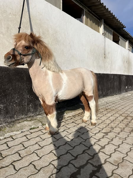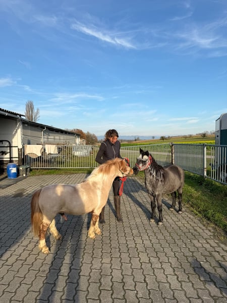 Zu vermitteln: Dieser kleine Shetty- Wallach namens „THEO“ sucht ein neues Zuhause! Er darf bei mir gerade ein paar Auffrischungs-Einheiten erhalten im Führtraining, Longieren, Reiten (geführt, mit kleinen Reitern natürlich) sowie als Handpferd raus ins Gelände! Er steht brav am Anbindeplatz, lässt sich gut die Hufe geben und bearbeiten, überall Putzen, kennt Longiergurt & Pad (wir haben keinen passenden Sattel für solch ein kleines Pferdchen hier bei uns) und kennt die Dusche sowie Scheren (er ist bei uns eingedeckt wegen der neuen „Frisur“). Er wurde schon bevor er zu uns kam geritten, hatte aber länger Pause. Er ist sehr anständig mit Reiter drauf, hat aber sehr viel Energie und ist definitiv ein sportliches und sehr fittes Shetty! Er stand lange mit einem älteren Pferd zusammen und hat sich sehr an dieses gebunden. Bei mir durfte er ab und an mit meinem Shettywallach und einem größeren Pony zusammen auf den Paddock zum Spielen. Er ist sehr aufgeregt mit anderen Pferden, spielt absolut gerne und ist ungern in Einzelhaltung. Mit Stuten verhält er sich etwas hengstig, er wurde mit 5 Jahren kastriert. Für eine Reitschule oder einen kleinen Betrieb für Ausritte & Longenstunden kommt er sicherlich gut in Frage! Als reines Freizeit- Kinderpony hat er etwas zu viel Go. Stockmaß 90cm. 16 Jahre. Keine AKU vorhanden. Keine Rehe, stand auch beim Vorbesitzer auf der Weide ohne Probleme Steht aktuell bei uns in der Box und bekommt Heu im Heunetz. Er wurde regelmäßig entwurmt sowie geimpft. Mehr Infos gerne per pn.