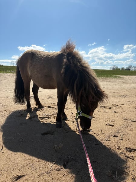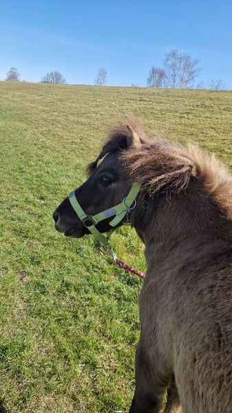 Schweren Herzens habe ich mich dazu entschieden, meinen Shetty-Wallach Cgrey (geb. 2019) zum Verkauf anzubieten. Er ist ein menschenbezogener, aufgeweckter kleiner Kerl, der gerne beschäftigt wird, mit Freude lernt und immer gefallen möchte. Gekauft habe ich ihn komplett roh – mittlerweile läuft er brav an der Longe und wird mit positiver Verstärkung und Horsemanship weiter ausgebildet. Für ihn wünsche ich mir eine geduldige, erfahrene Person, die Lust hat, ihn regelmäßig zu fördern und zu beschäftigen. Er wäre sicher auch ein tolles Pony zum Einspannen vor eine kleine Kutsche oder könnte sich zu einem liebevollen Kinderpony entwickeln – mit der richtigen Ausbildung. Wichtig: Er wird nicht als reiner Beisteller oder „Rasenmäher“ verkauft – er möchte arbeiten und gefördert werden! Leider kann ich ihm aufgrund meines beruflichen Werdegangs nicht mehr die Zeit und Aufmerksamkeit schenken, die er verdient. Ich wünsche mir für ihn ein schönes Zuhause im Offenstall mit gleichgroßen Artgenossen, wo er Freunde zum Spielen hat und einfach Pony sein darf. Dies ist kein Notverkauf, und dementsprechend möchte ich mir sein zukünftiges Zuhause selbstverständlich auch persönlich ansehen. Bei Interesse oder weiteren Fragen stehe ich gerne zur Verfügung. Das Pony kann nach Absprache besichtigt und kennengelernt werden.