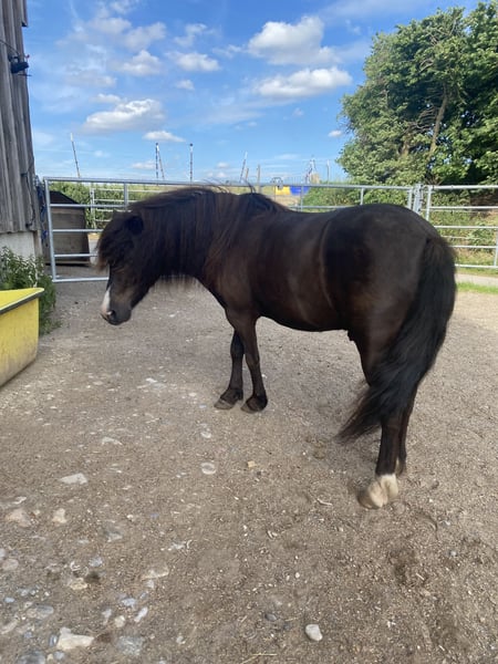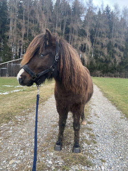 Schweren Herzens muss ich mich von meinem 7 jährigen Shetty Wallach Mephisto trennen. Menny ist ca. 1,17-,120m groß und total lieb im Umgang. Er ist Straßen sicher und im Gelände vor allem möglichem unerschrocken. Da er noch jung ist, ist er aber kein reines Kinderpony und hat natürlich noch ein paar Flausen im kopf ist aber immer zu Händeln. Er hat eine Fehlstellung am linken Hinterbein und einen leichten überriss was ihn beides aber in keiner weise einschränkt. Ansonsten ist er Kern gesund. Bis jetzt wurde er nie geritten oder gefahren. Er liebt lange Spaziergänge, kann longiert werden und macht super gerne Bodenarbeit. Aktuell steht er in einem offenstall in einer großen gemischten Herde mit je nach Jahreszeit 12-24 Stunden Koppel Zeit was ihm sehr gut gefällt daher würde ich mir ein neues Zuhause in einem offenstall oder ähnlichem sehr wünschen. Jegliches Zubehör wie Halfter, Stricke, Longe, Putzzeug kann gerne mitgenommen werden.