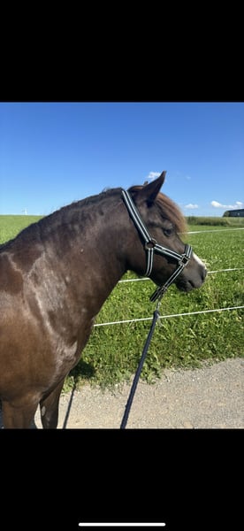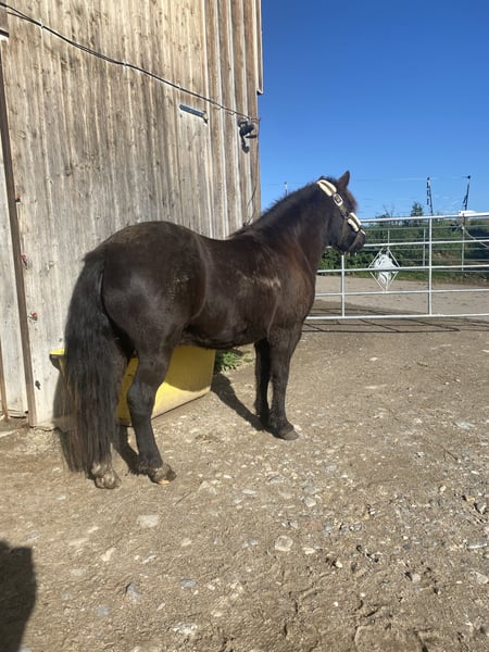 Schweren Herzens muss ich mich von meinem 7 jährigen Shetty Wallach Mephisto trennen. Menny ist ca. 1,17-,120m groß und total lieb im Umgang. Er ist Straßen sicher und im Gelände vor allem möglichem unerschrocken. Da er noch jung ist, ist er aber kein reines Kinderpony und hat natürlich noch ein paar Flausen im kopf ist aber immer zu Händeln. Er hat eine Fehlstellung am linken Hinterbein und einen leichten überriss was ihn beides aber in keiner weise einschränkt. Ansonsten ist er Kern gesund. Bis jetzt wurde er nie geritten oder gefahren. Er liebt lange Spaziergänge, kann longiert werden und macht super gerne Bodenarbeit. Aktuell steht er in einem offenstall in einer großen gemischten Herde mit je nach Jahreszeit 12-24 Stunden Koppel Zeit was ihm sehr gut gefällt daher würde ich mir ein neues Zuhause in einem offenstall oder ähnlichem sehr wünschen. Jegliches Zubehör wie Halfter, Stricke, Longe, Putzzeug kann gerne mitgenommen werden.