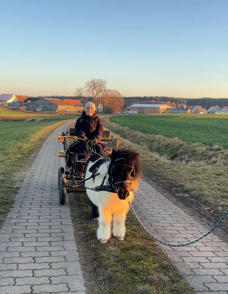 Wenn alles passt, verkaufe ich mein fast 9 jähriges Fahrpony Dusty. Dusty liebt es seine Kutsche zu ziehen, ist geländesicher und unerschrocken und auch gut am Boden gearbeitet. Allerdings braucht er eine souveräne Person an seiner Seite, die ihm klar Grenzen aufzeigen kann. Als Kinderpony ist er also nicht geeignet. Verkauft wird er nur in Shettygesellschaft in Offenstallhaltung. Die Kutsche und das Geschirr können gegen Aufpreis mit erworben werden.