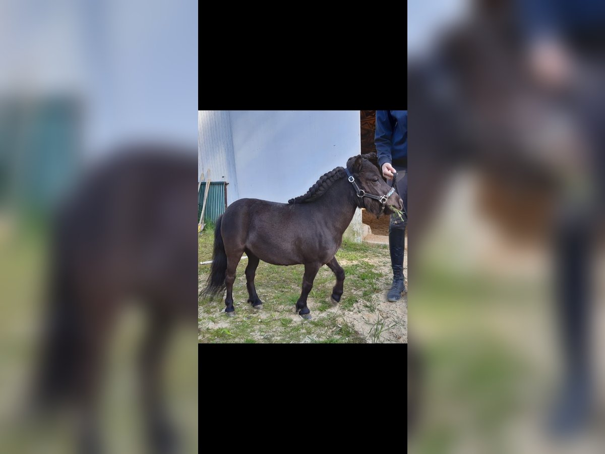 Penny ist ein Shetty das im Umgang sehr lieb und verschmust ist, sie wird von Kindern geputzt und geführt, ein paar mal saß auch schon ein kleines Mädchen auf ihr. Sie hatte vor 2 Jahren ein wunderschönes Fohlen. Sie selbst wurde als Fohlen prämiert. War immer gesund.