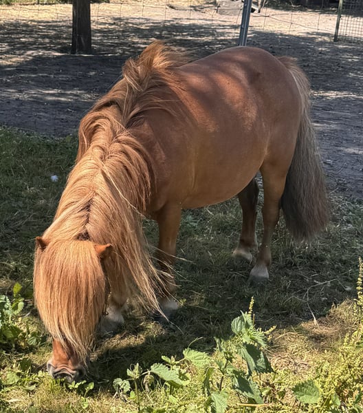 C'est à contrecoeur que je vends ma jument shetland Sydney. * 10 ans * Environ 90 cm au garrot * Clôture électrique sécurisée * Pas d’eczéma ni de réjections * Très douce lors des promenades guidées pour enfants, jamais effrayée chez nous ! * Non peureuse * Idéale pour le travail à la longe et les tricks * Très curieuse * Trampolines, enfants qui jouent, tracteurs et voitures ne la dérangent pas * Se laisse marcher au pas, au trot et au galop derrière un vélo La priorité à l’affectif, pas au prix. Ce n’est pas une tondeuse à gazon. Sydney a besoin d’un propriétaire qui prenne soin d’elle et s’occupe d’elle. Vente uniquement si tout est en ordre. N’hésitez pas à me contacter par WhatsApp au 0172/2977514.