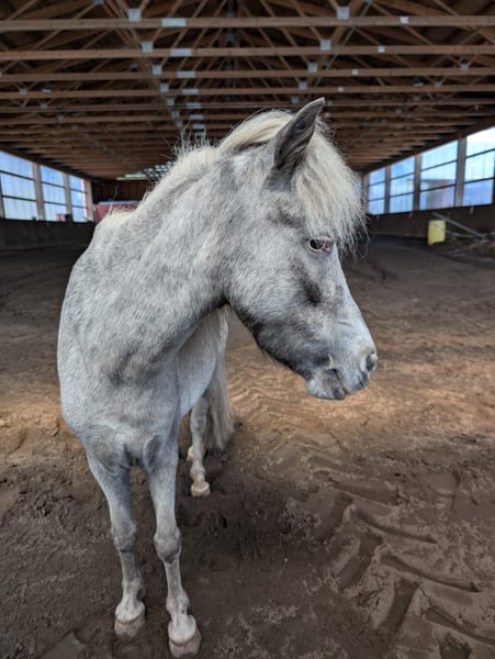 Bardzo przyjazna i towarzyska klacz Shetland, z pełną dokumentacją, do oddania w dobre ręce i chętnie wspierająca. Bonnie chętnie bierze udział we wszystkim: pracy na lonży, jazdy pod siodłem, spacerów na terenie i zawsze zachowuje się grzecznie i zaufanie. Miała już źrebaka. Oddajemy ją, gdy wszystko będzie odpowiednie, ponieważ u nas nie ma dla niej wystarczająco dużo zadań, ale cieszy się z każdej uwagi. Oczywiście, jest spokojna przy czyszczeniu, załadunku i absolutnie kompatybilna zarówno z małymi, jak i dużymi końmi.