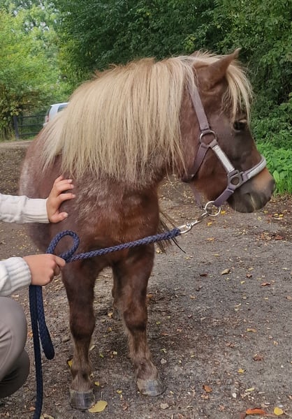 Sehr brave und wunderschöne Ponystute. Sie war bei uns als Gesellschaft für unsere Großpferde. Lässt sich brav führen und putzen. Sicher auch ein tolles Pony für die Kutsche. Eventuell tragend von unserem AMHA-Hengst. Bei uns war sie stets gesund. Läuft in der Herde auch problemlos mit Großpferden.