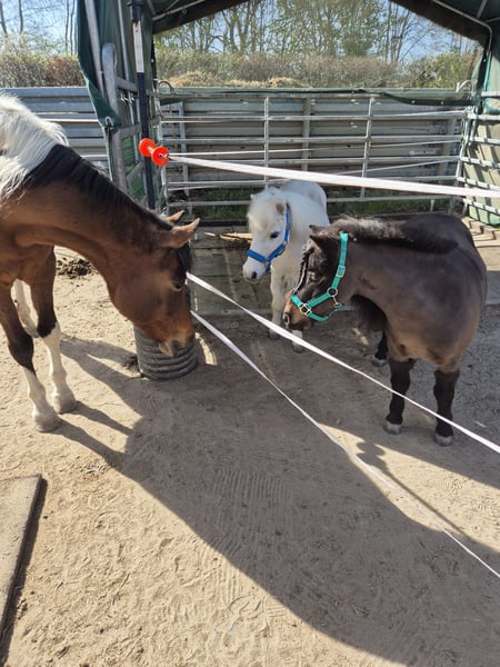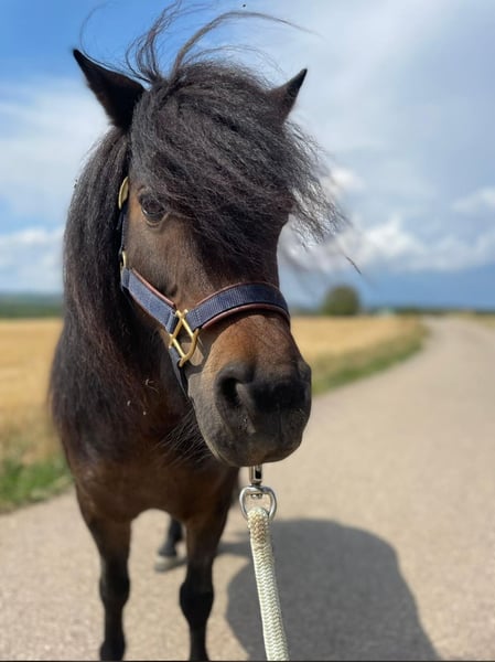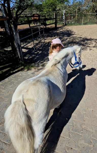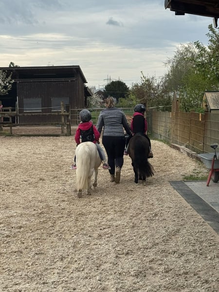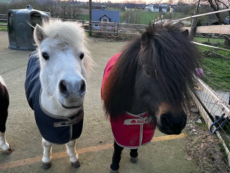 Wegen Aufgabe der Pferdehaltung suchen diese beiden gesunde Shettystute mit Pass und Papier im Auftrag ein neues Zuhause. Offenstallhaltung mit 24/7 Heu und stundenweise Wiese gewöhnt. Rehe und Ekzemfrei. Erna ist geführt und teilweise frei geritten und in der Ausbildung zum Fahrpony. Sie zieht inzwischen die Schleppe und. Sie kennt es als Handpferd mitzugehen (auch geritten) geht bei uns die Kinderstunden geführt und an der Longe. Beim Vorbesitzer hatte sie ein Fohlen und stand damit 24/7 auf der Wiese. Im Umgang ist sie sehr unkompliziert und lässt sich problemlos von Kindern putzen und betüddeln. Vom Verkehr und den landwirtschaftlichen Maschinen zeigt sie sich unbeeindruckt. Sie hat einen ausgeglichen Charakter und zeigt sich bei neuen Aufgaben sehr aufgeschlossen. Sie kennt das Zusammenleben mit Großpferden, jedoch wünschen wir uns für sie das sie weiterhin Shettygesellschaft hat und nicht alleine eine Box bewohnt sondern Shettygerecht in Offenstallhaltung. Zubehör kann übernommen werden. Ihre beste Freundin Elli, Schimmel, ebenfalls Shetty mit Pass und Papier, 21j, gesund und bis letztes Jahr nicht geritten oder gefahren und ist jetzt zu einem ganz tollen Partner ausgebildet worden. Sie hat sehr viel Freude an Aufgaben wie führen, Bodenarbeit, Spaziergänge, mit Sattel oder Pad geritten und läuft bei uns mit viel Elarn in den Kindergruppen mit. Elli hat ein Herz aus Gold und sucht als kindertauglicher Begleiter ebenfalls ein Zuhause. Es wäre schön wenn beide zusammen bleiben könnten ist aber kein Muss. Gerne beantworte ich alle weiteren Fragen persönlich.