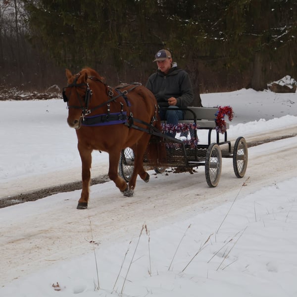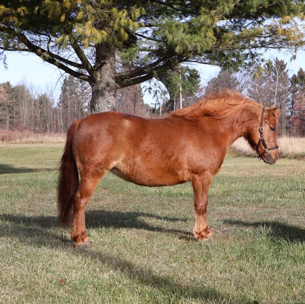 🎄𝐓𝐇𝐄 𝑯𝒐𝒍𝒊𝒅𝒂𝒚 𝐂𝐋𝐀𝐒𝐒𝐈𝐂🎄 Happening now thru MONDAY | DECEMBER 15th - Available EXCLUSIVELY on HorseBid's website! For more details and to register visit: www.Horsebid.com CONSIGNOR CONTACT: Blackstone Stables 248-390-6831 LOCATION: Howell MI BREED: Shetland REGISTERED: No COLOR: Chestnut HEIGHT: 12 AGE: 12 GENDER: Mare Are the words “Can I have a pony pleassseeee???” common in your house? Well, here she is kid tested and parent approved! Meet Penny! She’s a 12-year-old, 12hh chestnut pony mare, and you’ll be hard-pressed to find a pony as beautiful as her. She has a gorgeous deep red coat, and she’s as sweet as they come on the ground. Penny loves kids and is very respectful to work around. She gives kisses on command, and there’s not much this gal won’t do for a cookie or any sweet you have in your pocket. Penny has a quiet walk, a tiny trot, and just a kick gets her into a canter. She’s soft in your hand and listens well to voice commands. Her transitions are simple kiss to trot, kick to canter, and say “whoa” and she stops easily! The little kiddos can flop all over on a long rein and she will not go too fast. Did I mention she’s smooth? She has perfect gaits for a child who’s learning, as she’s as comfortable as a couch. Penny has extensive miles out on the trails. She’s been ridden all over Michigan and Ohio and has even been camping. She’s no stranger to woods, water, traffic, or wildlife. She’s been over bridges, through tunnels, and down the road! This is a pony who’s had years of kid miles, and her family has thrown every child antic at her she takes it all in stride. In the mood to do pony yoga? Groom for hours? Costume classes? She’s done it all with her littles and is always happy to soak up the attention. She plays well outside with others, and you can catch her anywhere. Penny requires nothing special. She’s the perfect size for any child, but sturdy enough that an adult can easily hop on. This pony will only sell to the best of homes where she will be loved and used. She’s beautifully colored and also well broke to drive! She stands to harness and hook up, and she drives like a Tesla. Just hold the lines or even better, climb in the cart and she’ll take you down the road, into town, through a parade, or even sledding! She is kid tested, mom-and-dad approved! Watch the videos she speaks for herself!