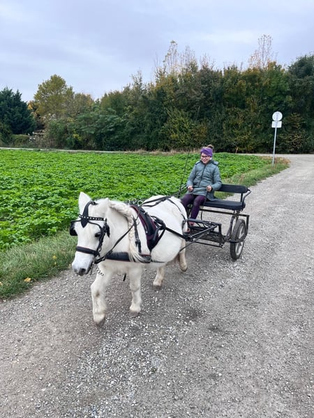 Zum Verkauf steht unsere liebevolle, 13-jährige Schimmel Shetland-Pony-Stute – ein echtes Allround-Talent für Kinder, Familien und ambitionierte junge und kleine Reiter. Sie wurde von unserer Tochter selbstständig ausgebildet und überzeugt mit einem freundlichen Charakter. Stockmaß ca. 1m. Barhuf Was unsere Stute besonders macht: • Vielseitig ausgebildet: Bereits auf Turnieren wie der Führzügel-Klasse oder first ridden vorgestellt, Reiterpass absolviert, Nadelprüfung vorbereitet. • geritten und gefahren. • Kinder- und familienfreundlich: Offenstall- und Herdenhaltung gewohnt, verträglich, unkompliziert im Umgang. • Geländesicher: Ausritte in der Gruppe • Schmiede- und Verladefromm, Beladen durch unsere Tochter. • Straßensicher: Kennt Traktor, Autos, etc. • Kennt Schulstunden an der Longe aber auch in der Abteilung Sie ist ein absplut verschmuster und menschenbezogener Goldschatz. Inklusive umfangreichem Zubehör: • Sattel, zwei Zaumzeuge, Gebisse • Schabracken, Abschwitz- und Regendecke, Fliegenhauben, Beinschutz • Fahrgeschirr inkl. Fahrkantare, Longiergurt mit Haltegriff • Alle Halfter Aktuell steht sie nachts in der Box und tagsüber in einer kleinen Ponyherde auf der Koppel. Sie wird nur an einen Bestplatz abgegeben – ein liebevolles Zuhause ist uns wichtig. Bei uns ist sie ein Familienmitglied und wir würden uns für sie eine Familie wünschen. Sie wird nur abgegeben, weil unsere Tochter aus ihr hinausgewachsen ist und wir finden, dass sie zum herumstehen zu schade ist. Ein Video kann bei ernsthaftem Interesse zugesendet werden. Dies ist kein Notverkauf – unsere Stute soll in gute Hände kommen, die ihre Talente und ihren Charakter zu schätzen wissen. Gerne helfen wir beim Transport. Bei Interesse gerne per Mail.