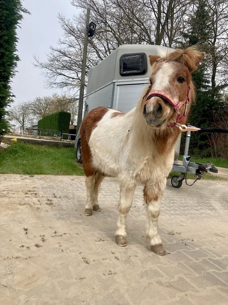 Verkaufe liebevolle Shetland Ponystute Zum Verkauf steht eine bezaubernde Shetland Ponystute, geboren im Jahr 2008. Diese hübsche Schecke hat ein Stockmaß von ca. 100 cm und ist perfekt für Freizeitaktivitäten geeignet. Sie ist freundlich, neugierig und eignet sich für Kinder die an der Hand spazieren gehen wollen und ein Pony knuddeln möchten. Sie hatte vor Jahren mal eine hufrehe die aber nicht wieder auftrat, ist gepflegt und freut sich auf eine neue Familie, die viel Freude mit ihr haben möchte. Bei Interesse und für weitere Informationen stehe ich gerne zur Verfügung.