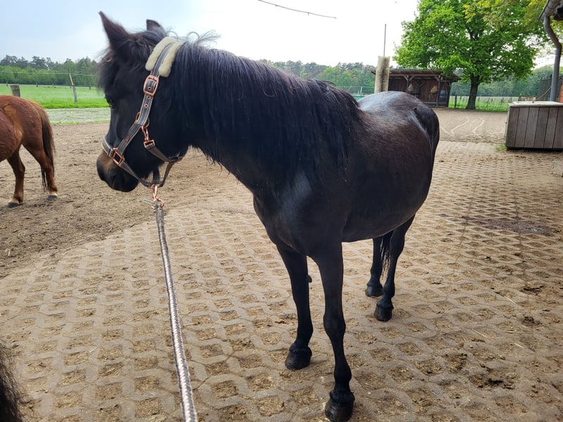 I am looking for a suitable new home for my elderly Shetty-Haflinger cross mare, Dana, who is 29 years old and approximately 1.13 meters tall, preferably near the North Sea. She is gentle and well-behaved around children and has been ridden (and theoretically driven in a carriage). Dana is an absolutely reliable horse, although she has some minor handicaps due to her previous living conditions. Three years ago, I took her over from the neighbor (a farm pony), along with some issues that needed attention. Finding support for her small needs has proven difficult, and I am unable to provide her with the perfect environment, so I am now searching for her an ideal final home. Due to her respiratory issues, a move to the north would be preferred, as I believe she would thrive much better there, even if her current care is good. I am happy to discuss her handicaps privately. She is regularly seen by the farrier every six weeks, receives osteopathic treatment regularly, and her dental care was attended to in early July. Her vaccinations are up to date. A home where she can still bring joy to a child, spend some time on pasture, and be loved would be wonderful. Currently, she is located in Molbergen, but this arrangement is not ideal (more private). Some equipment, such as a good saddle, can be included for an additional fee. If you have any questions or would like to see more pictures, please feel free to contact me.