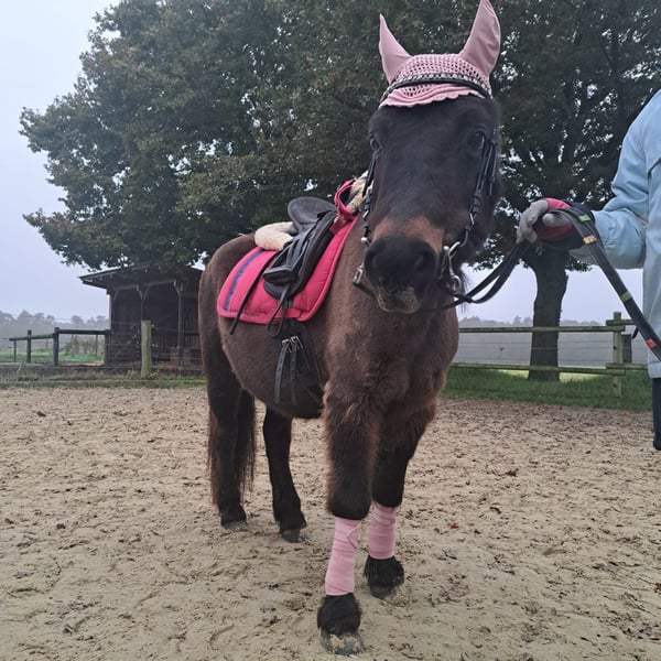 Je recherche pour ma vieille jument mixte Shetty-Haflinger Dana (29 ans), mesurant 1,13 m, un nouveau foyer adapté, idéalement près de la mer du Nord. Elle est douce avec les enfants, montée (et théoriquement aussi conduite en voiture). C’est une jument très fiable, malgré quelques petits handicaps dus à ses conditions de vie précédentes. Il y a trois ans, je l’ai récupérée auprès d’un voisin (un poney de ferme) avec quelques soucis. Étant donné qu’il est difficile de trouver pour elle le soutien dont elle a besoin et que je ne peux pas lui offrir la meilleure pension, je cherche maintenant la solution idéale pour sa fin de vie. En raison de ses problèmes respiratoires, une pension dans le Nord serait préférable, car même si nos conditions d’élevage sont bonnes, je pense qu’elle y serait beaucoup mieux. Les détails concernant ses handicaps seraient discutés en privé. Elle est régulièrement présentée au maréchal-ferrant toutes les 6 semaines, traitée régulièrement par ostéopathie. Son dentiste est passé début juillet, et ses vaccinations sont à jour. Un endroit où elle pourrait encore rendre un enfant heureux, passer quelques heures dans le pré, et où elle serait aimée, serait parfait. Actuellement, elle se trouve à Molbergen, mais cette situation ne semble pas idéale (plus privé). Un peu d’équipement, comme un bon selle, peut être acheté en supplément. N’hésitez pas à me contacter pour toute question ou pour recevoir d’autres photos.