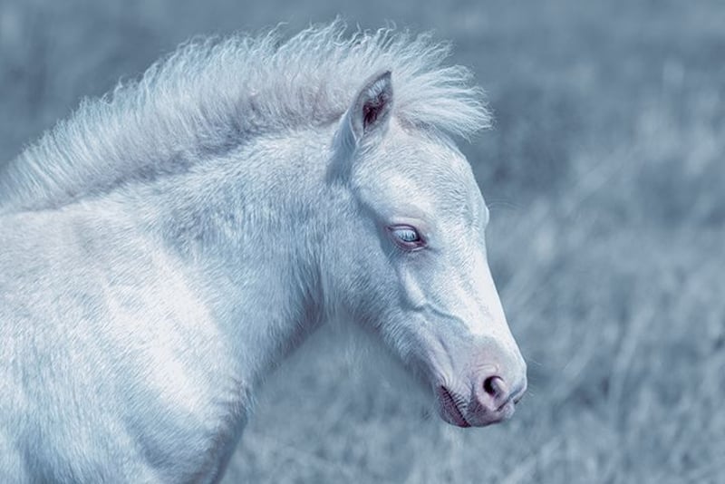 Cremello Stute Shetland Pony Shetty blaue Augen blue eyes weiß