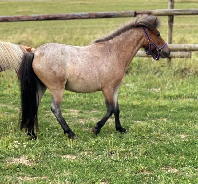 Farbwechsler Stute – Jung, hübsch & menschenbezogen ✨ Alter: 2 Jahre Stockmaß: ca. 90 cm Diese kleine Stute ist ein echter Hingucker! Mit ihrer besonderen Farbentwicklung (Farbwechsler) und ihrem ruhigen, ausgeglichenen Wesen bringt sie alles mit, um ein treuer Begleiter zu werden. ✅ brav beim Putzen ✅ läuft zuverlässig am Strick ✅ kennt Planen & kleine Hindernisse ✅ bestens an Menschen gewöhnt Sie überzeugt durch ihre Sanftheit und Gelassenheit und wird mit der Zeit eine ganz besondere Fellfarbe entwickeln – ein echtes Schmuckstück für Ponyliebhaber! Für das Putzen, Spazierengehen, Knuddeln und Kennenlernen berechnen wir 15 €, um den Reittourismus nicht zu unterstützen – zum Wohle des Pferdes. Beim Kauf am selben Tag wird der Betrag verrechnet.