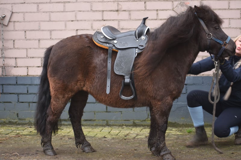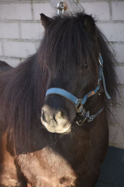 Prachtige, lieve volle bereden grote 5 jarige Shetdame Wat een plaatje is Philou vd Blokse Polder. Ze is een zwartbruine dame met een mooie bouw en ruime gangen. Het is een heel grote Shetlander met een stokmaat van ca 107 ! Een kleine volwassene past ook prima op haar, ze is lekker vol. Daarmee is ze een ideale familiepony. Ze is vrij van gebreken ( al eet ze natuurlijk erg graag, dat moet je wel in de gaten houden ) en is hier en voorheen super super super koel in het hoofd en braaf. Zowel in de omgang, op stal, in de wei, t verkeer en de trailer, onder de ruiter en in de groep. Haar lieve baasjes moesten haar en haar moeder Melanie vt Slot wegens hun eigen leeftijd/ gezondheid met verdriet afstaan. Ze hadden jaren geleden al met goede afloop een pony aan Stal Doorstap verkocht, en gunde het ons deze fantastische pony’s te plaatsen bij nieuwe baasjes. Dit zijn echt paradepaardjes! Prijs 2450,- inclusief westernzadel en compleet hoofdstel Prijs voor Melanie en Philou samen 4750,- compleet