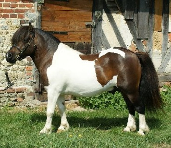 Ponette pleins papiers Shetland inscrite au stud-book de la race Shetland comme reproductrice. Pure souche de la race Shetland - Livre A. Sellée, sanglée, montée tenue en main. Pansage, harnachement, et marchée en main : gérés par un jeune enfant. Calme. Facile à vivre. Sait rester seule en toutes circonstances. Super connectée sur l'humain dont elle recherche le contact. Vient se faire licoler au pré. Plutôt dominée dans le troupeau. S'entend avec tout équidé, mais aussi les chiens, les poules, les vaches, les moutons. Habituée tracteur, quad, remorques, bricolage, chasseurs, gibier... Vit au parc à l'année, sauf au plus fort de l'hiver rentrée au boxe pour préserver les patûres du piétinement. Tout lui est ouvert : projet reproduction ou sport compétition. Idéale pilier d'élevage ou première ponette d'enfant. A pouliné pour la première fois en 2024 - poulinage seule sans problème. Poulain calme, avec beaucoup d'os, comme elle, vendu comme prospect étalon. Éduque son poulain, et le connecte aux autres et à l'humain. Poulain facile. Pas resaillie, vendue vide comme poulinière. Produit rare sur le marché. Son père est l'étalon international classe 1 TEXAS DU LUTZELHOF (dernière photo - bay tobiano). Transport possible sur le Nord Est France selon conditions à convenir.