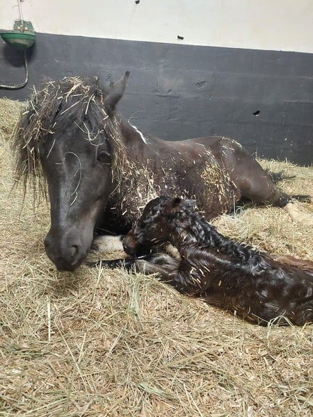 Pony with full papers, Shetland registered in the breed studbook as a breeding mare. Purebred Shetland lineage - Book A. Calm. Can stay alone in all circumstances. Thoughtful. Very connected to humans, seeking contact. Easy to catch in the pasture. Pleasant to live with. Even-tempered. Sociable. Gets along with all equines, as well as dogs, chickens, cows, and sheep. All options are open for her: breeding project or competition sport. Ideal as a breeding cornerstone or a child's first pony. Has never been in a riding club. She has already carried a child on her back without concern. Gave birth for the first time in 2024 - foaling alone without any issues. Calm foal, with a lot of bone like her, sold as a stallion prospect. Educates her foal and connects it with others and humans. Easy foal. Not re-bred, sold empty as a broodmare. Rare product on the market. Her sire is the international class 1 stallion TEXAS DU LUTZELHOF (last photo - bay tobiano).