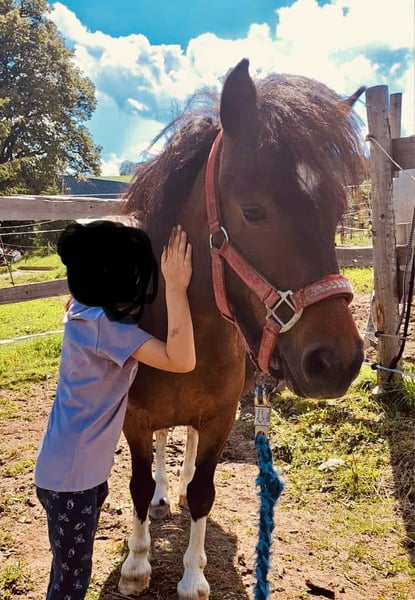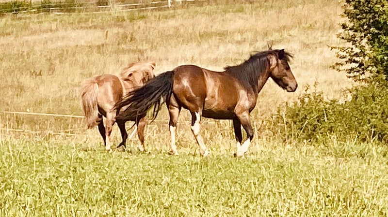 7 Jahre alte Shetty Stute mit rotem Equidenpass zu verkaufen. Sie lebt im Offenstall mit 1 Pony und 2 Großpferden zusammen. Ich hatte sie für mein altes Shetty als Kumpeline gekauft, leider zeichnet sich ab, dass sie sehr gerne arbeitet und bei mir absolut unterfordert ist. Sie ist kein reines Kinderpony, da sie bei Überforderung oder Unsicherheit gerne rammelig wird. Unter Aufsicht wird sie von Kindern geputzt und geritten. Reiten allerdings nur geführt. Sie ist auf einem Auge blind was sicherlich manchmal die Unsicherheit verstärkt. Wenn Sie regelmäßig gearbeitet wird, ist sie allerdings sehr brav und willig. Sie hatte beim Vorbesitzer auch schon ein Fohlen und daher bestimmt auch zur Zucht interessant. Sie hat kein Ekzem und keine Hufrehe, war bei mir im Sommer halbtags auf Koppel, da sie sonst ponytypisch zu dick geworden wäre. Standort in Sachsen, genauer Standort per PN. Tausch gegen ein älteres Shetty wäre auch möglich. 5🥕🥕