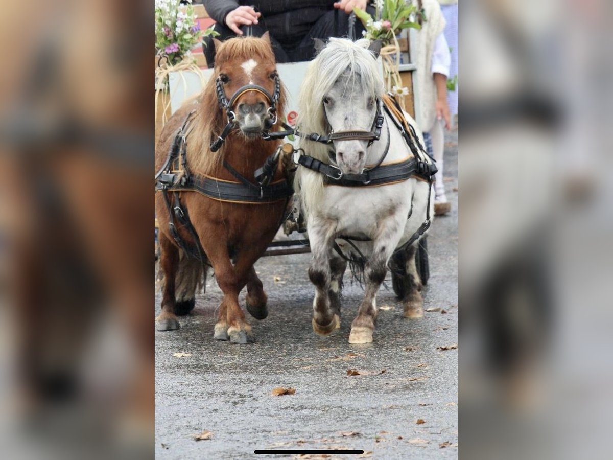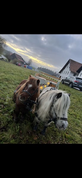 Verkaufe meine beiden Minischettys Sie werden nur *ZUSAMMEN* abgegeben. Minishetty Wallach: - Farbe: Few Spot - Stockmaß: 84cm - Alter: 9 Jahre - Volle Abstammungspapiere Minishetty Stute: - Farbe: Fuchs - Stockmaß: 82cm - Alter: 13 Jahre Beide sind absolut verkehrssicher, kinderlieb und unerschrocken. Kein Ekzem, Hufrehe o.ä Sie wurden regelmäßig entwurmt, geimpft, den Hufschmied vorgestellt und im Oktober 2025 die Zähne gemacht. Sie werden nur an einem *Bestplatz* abgegeben, am liebsten wäre mir im Offenstall. Kutsche und Geschirre können gerne mitgegeben werden. Kein Notverkauf! Händleranfragen werden ignoriert! Bei ernsthaften Interesse schicke ich gerne mehr Bilder und Videos