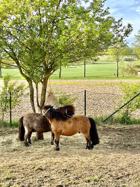 Herzensplätze für zwei Minishettys gesucht – Dropsi & Gulliver Aufgrund einer wohnlichen und gesundheitlichen Veränderung kann ich meine beiden Minishetty-Wallache Dropsi und Gulliver leider nicht mehr selbst halten. Diese Entscheidung tut mir sehr weh und ist mir alles andere als leicht gefallen. Umso wichtiger ist mir, dass beide ein Zuhause finden, in dem sie gesehen, verstanden und von Herzen aufgenommen werden.  ✨ Dropsi – ca. 20 Jahre, ca. 90 cm, Rappe Sensibel, feinfühlig, keine typischen Shetty-Manieren. Er läuft verlässlich am Langzügel und an der Hand neben der Kutsche. Ruhiges, strukturiertes Umfeld gewünscht. Gesundheitlich: zweimal Hufrehe in den letzten vier Jahren, Cushing ausgeschlossen, bei nicht bewässertem Heu Husten.  Gulliver – 13 Jahre, ca. 85 cm, braun Verspielt, munter, sehr gelehrig, kinderlieb, manchmal ponytypisch frech. Ein- und zweispännig gefahren, zuletzt einspännig. Gesund, keine bekannten Erkrankungen.  Haltung aktuell: Tagsüber Auslauf ohne Gras, täglich ca. 1–2 Stunden Weidegang, nachts im Stall. Im Sommer 24/7 im Auslauf.  Gesucht wird: Ein liebevolles, verantwortungsvolles Zuhause, gerne mit kleiner Herde und Familienanschluss. Mein größter Wunsch ist, dass beide gemeinsam in dasselbe Zuhause ziehen dürfen – das ist jedoch kein Muss. Wichtig ist vor allem, dass sie einen wirklich passenden, herzlichen Platz finden.  Wichtig: Ich bitte ausdrücklich von unpassenden oder wertenden Kommentaren abzusehen. Diese Entscheidung ist sehr schmerzhaft für mich. Bitte nur melden bei ernsthaftem Interesse. Weitere Informationen teile ich gerne per Privatnachricht mit.