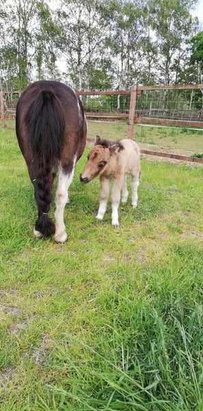 State Premium Mare, Original Mini Shetland, U87 cm We are offering our beautiful State Premium Mare for sale. She has had five foals with us, all of which were very correct and full of spirit. She is low in the hierarchy, completely insecure around fences, and avoids any conflicts. Not a children's pony, as she is overly cautious around humans. Her foals are easy to handle and approach. Health-wise, she has never had any issues with us. Her stunning mane and tail make her a real eye-catcher, and she passes this trait on. She also has an impressive trot that is sure to attract attention. Viewing possible at any time by appointment. Pedigree details can be provided upon request; however, inquiries without a name or asking for "best price" will be ignored.