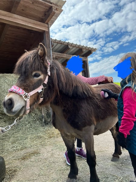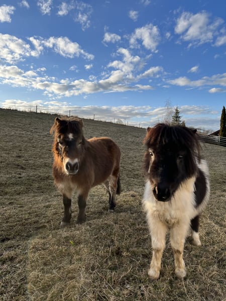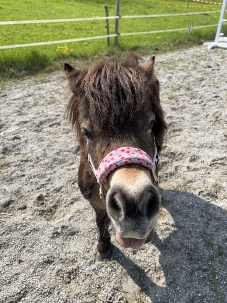Hallo! Verkaufe meine geliebte Nora aufgrund von Bestandsverkleinerung Nora ist eine ca. 90cm große und 17 Jahre alte Mini Shetty Stute Sie ist ein perfektes Kinderpony mit dem man alles machen kann, egal ob Spaziergänge, Putzen, Kinderreiten, Longierarbeit, Bodenarbeit,… mit ihr macht alles Spaß! Auch das Kutschenfahren macht sie super mit und ist dabei wie immer unerschrocken! Sie liebt und genießt jede Aufmerksamkeit! Im Umgang ist sie sehr lieb und kennt keine Unarten! Egal ob Traktor, Hunde, Kühe,… sie schert sich vor nichts! Zudem ist sie regelmäßig geimpft und entwurmt Ist stets beim Verladen oder Hufschmied sehr brav Sie war bei uns noch nie krank, verletzt oder sonstiges Zubehör und kleine Kutsche (Gig) ist dabei Platz vor Preis! Bei Interesse oder weiteren Frage gerne melden