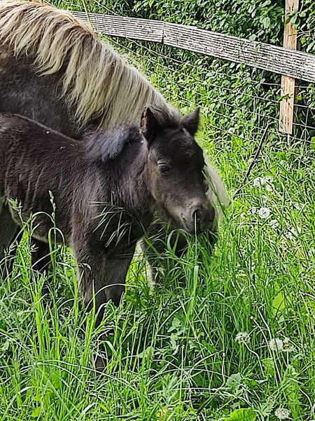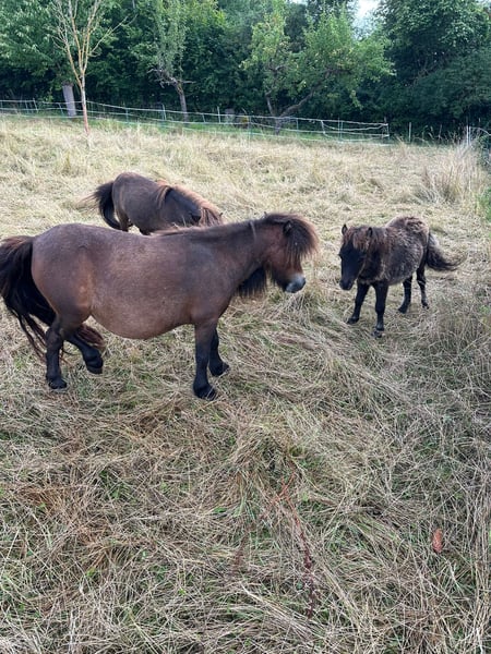 Dit is ons merrieveulen Weinberg's Lillyfee. Ze is geboren op 4 april 2025. Ze krijgt papieren van het ZfdP. Ook Lillyfee kon de fokkeuringsrechter van zich overtuigen en kreeg de veulenpremie. Vader is onze hengst Turmalin vom Buchberg Isabell Buckskin, met een schofthoogte van 80 cm. Hij is voorlopig op ons verzoek in hengstenboek 2 ingeschreven. Volgend jaar zullen we hem voorstellen voor de keuring. Moeder is onze Laura, 78 cm en zij is bruin. Lillyfee lijkt een Smoky Black te zijn. Dit kan de nieuwe eigenaar laten testen. Ook groeit zij op in een kudde. Lillyfee mag per direct haar koffertje pakken. Lillyfee kan graag bezocht worden voor een persoonlijke kennismaking. Bij interesse kunt u gerust contact opnemen voor meer informatie.