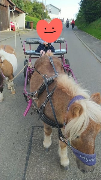 Aus gesundheitlichen Gründen meinerseits müssen wir uns schweren Herzens von Gipsy und Coco trennen. Beide sind geführt von Kindern reitbar, kennen Hunde, Kinder, landwirtschaftliche Geräte, Spiel-Spaß-Tage. Schecke: Gipsy, 7jährig, will und muß was tun (körperlich und geistig), zweispännig souveräner als einspännig, kleine "Arbeitsmaschine" Fuchs: Coco, 18jährig (seit 3jährig bei uns), braucht CushingTabletten, ansonsten fit, ein kleiner Allrounder Leben im Offenstall mit 2 Kleinpferden. Am liebsten gemeinsam abzugeben, einzeln nur an einen Platz mit einem anderen Shetty.