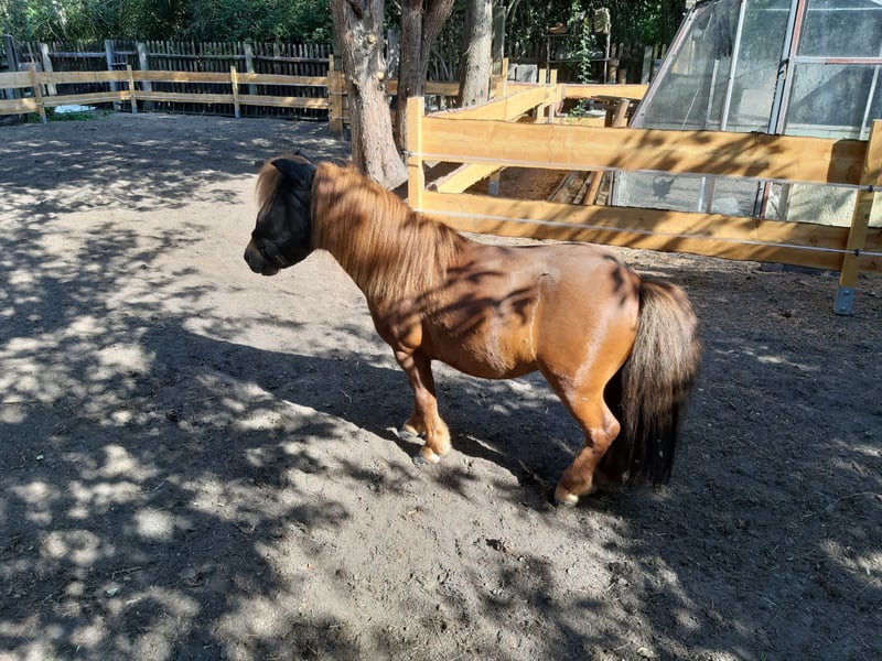 With a heavy heart, we are seeking a loving and nurturing new home for our little Gustav. Details about Gustav: • Born on May 1, 2011 • Height: 80 cm • Miniature Shetland stallion • Color: Chestnut • Green passport and ownership papers available Gustav is a very special little pony – friendly, charming, and with a wonderful character. He has shown himself to be more subordinate and social within the herd. Currently, he lives in a paddock with 24/7 hay access but is also accustomed to being stabled overnight. ✨ His talents & training: Gustav has been academically worked with and is driven both single and double. Due to his size, he has not been ridden. He has reliably pulled a carriage, even in the presence of mares – always well-behaved and easy to handle. He has a balanced, curious nature – occasionally testing playful boundaries, but always fair and friendly. We also see potential for therapeutic work in him, as he is a sensitive and affectionate pony that enjoys cooperating with people. We are looking for a home for Gustav where he will be loved, understood, and supported. People with horse sense, time, and dedication who know that a Miniature Shetland needs just as much attention as a large horse. Not suitable for: ❌ Traders ❌ Riding schools ❌ Purely children's ponies for entertainment – Gustav is more than that. Priority is given to the right fit, not the price. It is important to us that Gustav finds a suitable home, regardless of the amount on the transfer document. If desired, Gustav can come with some accessories. If you are genuinely interested, we would be very happy to receive a message introducing yourself and describing your potential new home for Gustav. Gustav is waiting – for people who will appreciate his big heart.