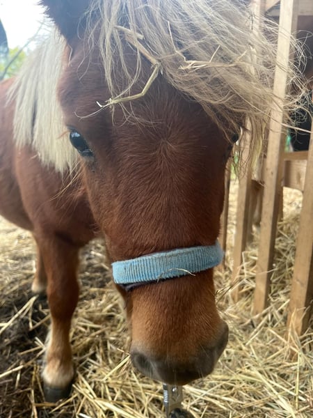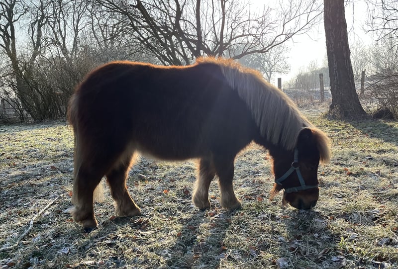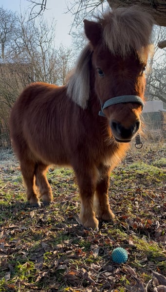 Sehr lieber gepflegter Mini Shetty Hengst Chip und Equidenpass. 2. Geburtstag im Juni 80cm groß gesund , top Hufe lieb, gut und liebevoll geprägt regelmäßig entwurmt regelmäßig beim Hufschmied Momentan lebt er bei uns im Offenstall mit Ziegen und einem Wallach-Grosspony zusammen. Alltagsgeräusche, Grossmaschinen und Gelände machen ihm nichts aus. Er lässt sich fromm von Kindern am Halfter herumführen, gibt artig lange die Hufe, lässt sich überall und lange putzen und hatte auch schon einen Trainigssattel mit Geraschel auf. Das klappt wunderbar, dem Alter entsprechend ist da ganz viel Potenzial. Auch sonst ist er sehr umgänglich, nach einer kleinen Aufwärmphase. Anderen Tieren ist er aufgeschlossen und macht sich Platz, falls er ihn braucht. Er steht auch mal allein auf der Koppel, spielt ebenso schön mit dem Großen und schläft bei seinem großen Kumpel mit dem er sich sehr gut versteht. Es fällt nicht leicht , aber der Höhenunterschied ist zum Nachtei für beide auf Dauer, daher suchen wir ein neues Zuhause mit anderen Shettys oder einer guten Aufgabe.