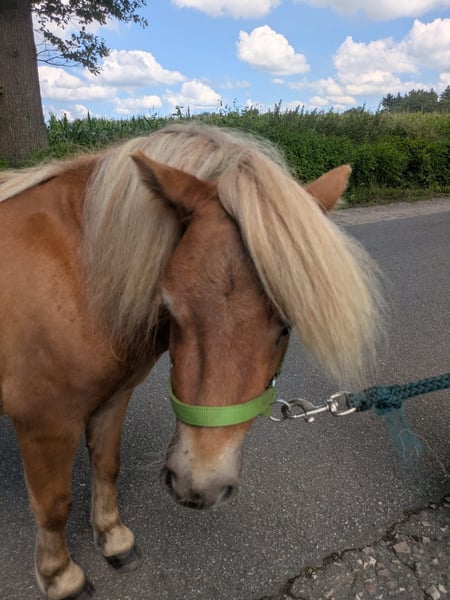 „Kalle“ Kalimero vom Radebachtal è un piccolo stallone sveglio, curioso e comunque tranquillo, che ora cerca una nuova casa a 5 stelle. In base alla sua età, è giocoso e ama correre con i suoi amici (un altro stallone mini-shetland e un puledro quarter) nel pascolo. Tuttavia, gli piace anche stare da solo e si allontana dal gruppo, non è appiccicoso. È abituato a stare in compagnia di cavalli grandi e di altri stalloni giovani nella mandria. Per carattere, è un tenero e affettuoso piccolo, che si è ben integrato nel gruppo. Comportandosi in modo assolutamente semplice nella mandria, è sempre gentile con le persone e facile da gestire. È cresciuto fin dalla nascita con mini-shetland della sua età ed è abituato a vivere in un paddock aperto 24/7 tutto l’anno. Attualmente, durante l'estate, vive 24/7 in un grande pascolo piuttosto scarso; nella nuova casa, il tempo di pascolo dovrebbe essere limitato per motivi di salute, ad esempio sostituito da una gestione in paddock con sufficiente fieno e/o fieno secco. Poiché ha una buona genealogia (informazioni più dettagliate possono essere fornite su richiesta seria), potrei anche considerare di presentarlo a una selezione. Inoltre, sicuramente sarà entusiasta di lavorare davanti al sulky e naturalmente di fare lavoro a terra, poiché ha un'intelligenza spiccata. Anche se è un piccolo shetland semplice, è pur sempre uno stallone che deve essere affidato a mani esperte e coerenti. Non è adatto a essere gestito solo da bambini. Attualmente non mostra comportamenti da stallone, ma questo può cambiare rapidamente al primo contatto con le fattrici (anche l'odore delle fattrici in calore a diverse centinaia di metri di distanza può essere percepito dagli stalloni). Il nuovo proprietario è libero di decidere di castrarlo, prima lo fa, meglio è. NON È ADATTO PER ESSERE MONTATO DA BAMBINI PICCOLI!!! Questa non è una vendita urgente!!! Poiché sono molto preoccupato per la sua futura casa, sarà venduto solo alle seguenti condizioni: - sarà ceduto solo in gestione aperta 24/7 tutto l’anno; una gestione in box potrebbe danneggiarlo a causa del suo spesso e denso pelo. - sarà ceduto solo in una mandria in cui ci siano anche altri mini-shetland o almeno shetland, questo è previsto per motivi di protezione degli animali. Deve poter giocare con compagni della sua taglia e scambiare comportamenti sociali come grattarsi il pelo. - NON sarà venduto a scuole di equitazione o commercianti di cavalli. - non sarà venduto come pony da sella, non è adatto e questo potrebbe danneggiarlo. - sarà ceduto con diritto di riacquisto. - NON sarà ceduto come "tagliaerba". Viene regolarmente mostrato al ferratore, viene/è regolarmente sverminato e trova estremamente interessante il trasportino per cavalli. Mi piacerebbe per lui una casa appassionata di mini-shetland, ad esempio amanti di questa razza o persone esperte e realmente motivate con i pony. In caso di interesse serio, il piccolo può essere visitato e, come sempre, il posto è più importante del prezzo. Se interessati, si prega di lasciare nome e numero di telefono, richiamerò il prima possibile!