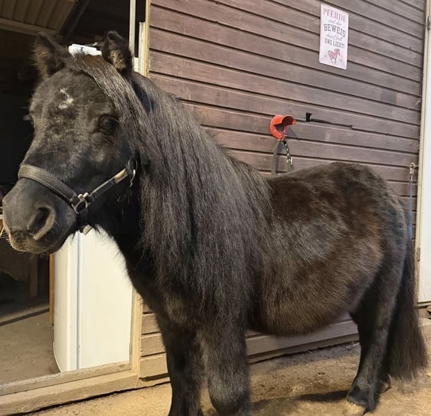 Verkaufe im Auftrag : Zum Verkauf steht unser hübscher, schwarzer Mini-Shetlandpony-Hengst „Klecks“, geboren am 01.01.2018, mit gültigem deutschem Equidenpass. Klecks ist ein kompakter, kräftig gebauter Mini-Shetty mit schöner, dichter Mähne und freundlichem Ausdruck. Er ist lieb im täglichen Umgang, menschenbezogen und kennt den Stallalltag sehr gut. Er kann von Kindern geführt geritten werden und eignet sich daher ideal als: • Kinderpony für erste Reiterfahrungen (geführt) • Familienpony • Pony für Spaziergänge • oder als zuverlässiges Pony im Ponybetrieb Aktuell ist Klecks nicht im Training. Im Gelände ist er unkompliziert und brav, man sollte jedoch regelmäßig mit ihm arbeiten, da er sonst sehr interessiert an der Umgebung ist. Dabei ist er niemals böse, immer händelbar und gut kontrollierbar. Er geht sowohl alleine als auch in der Gruppe problemlos ins Gelände. Im Umgang zeigt er sich brav und zuverlässig. Er ist zaunsicher bei eingeschaltetem Strom und verhält sich ruhig, solange keine Stuten direkt neben ihm stehen. Daten auf einen Blick: • Name: Klecks • Rasse: Mini-Shetlandpony (Mini-Shetty) • Geschlecht: Hengst • Geboren: 01.01.2018 • Farbe: Rappe (schwarz) • Stockmaß: ca. 93 cm • Equidenpass vorhanden • Standort: Raum Ulm / Neu-Ulm Nur in gute, verantwortungsvolle Hände abzugeben. Preisvorstellung: 1200€ (VB) Besichtigung und Kennenlernen nach Absprache gerne jederzeit möglich. Bei Interesse bitte ausschließlich über WhatsApp oder telefonisch