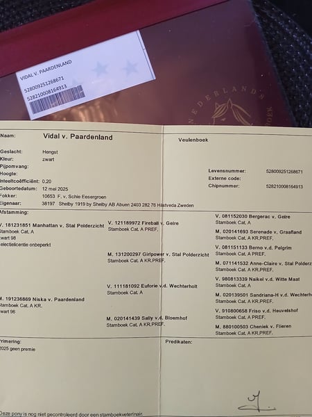 This is not just any pony. Vidal is an individual out of the ordinary – a "Special One" who combines presence with a fantastic temperament. He comes from excellent lines with Kroon, Premium, and Elit titles in his pedigree. This makes him a superb prospect for future breeding and showing, but thanks to his safe and social nature, he is equally suitable as a luxury riding pony and a child's best friend. Vester is used to children, dogs, and daily handling on the farm. A correct and healthy pony ready to find his new home. He has a passport and all necessary vaccinations. Price 850e Serious buyers are welcome to contact us, and we will happily provide more photos and videos via WhatsApp. Sold by 1919 by Shelby AB.